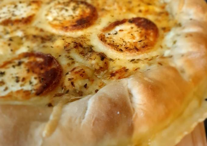 Pizza 3 fromages et pâte cheesy crust pas à pas de recette